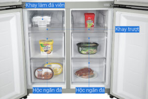 – Dung tích ngăn lạnh 316 lít. Bên trong tủ được thiết kế có kệ, ngăn đựng thực phẩm tươi và ngăn đựng thực phẩm khô. Ngoài ra, mỗi bên cánh cửa tủ lạnh cũng được thiết kế thêm khay chứa.