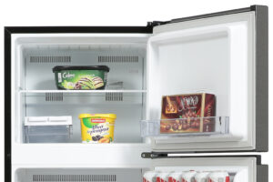 – Cửa tủ lạnh làm từ chất liệu kim loại phủ sơn tĩnh điện cho độ bóng sáng và tính thẩm mỹ cao, chống ăn mòn, chịu nhiệt tốt, loại bỏ các vết bẩn bám trên bề mặt tủ dễ dàng, không tốn nhiều sức lực. Chất liệu khay ngăn lạnh bằng kính chịu lực, cho bạn an tâm đặt nhiều thực phẩm vào bên trong mà không lo khay chứa bị nứt gãy.