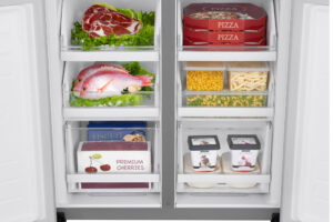 – Trang bị nhiều ngăn kệ bên trong tủ và cửa tủ giúp việc phân loại và sắp xếp thực phẩm dễ dàng. Vị trí dưới cùng là ngăn rau củ Big Fresh Zone được thiết kế theo dạng hộp kín, khả năng giữ độ ẩm tối ưu đến 20%, giúp bảo quản rau củ luôn tươi ngon, mọng nước.