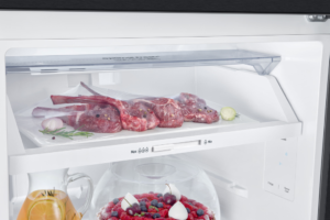 + Chế độ thịt cá: Tùy chỉnh thanh kéo ở vị trí Max và chọn nhiệt độ 3°C ở bảng điều khiển, phù hợp bảo quản các thực phẩm tươi sống như thịt cá.