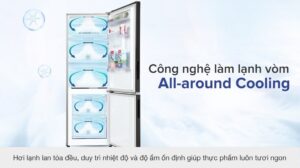 Chiếc tủ lạnh này có dung tích ngăn lạnh là 215 lít và ngăn đá là 92 lít nên phù hợp để bảo quản thực phẩm cho gia đình từ 3 – 4 thành viên.