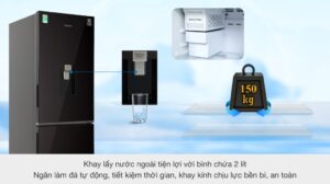 Tủ lạnh còn có thiết kế với khay lấy nước ngay trên cửa tủ, tiện lợi lấy nước uống mà không cần mở cửa tủ nhiều lần, tránh làm thất thoát hơi lạnh.