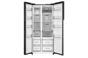 – Thiết kế kiểu Side by side với chất liệu cửa tủ là kính nên mang đến sự tinh tế và hiện đại cho không gian. Phần tay cầm có thiết kế âm ẩn nên nhìn chiếc tủ giống như một khối liền mạch mang đến sự gọn gàng.
